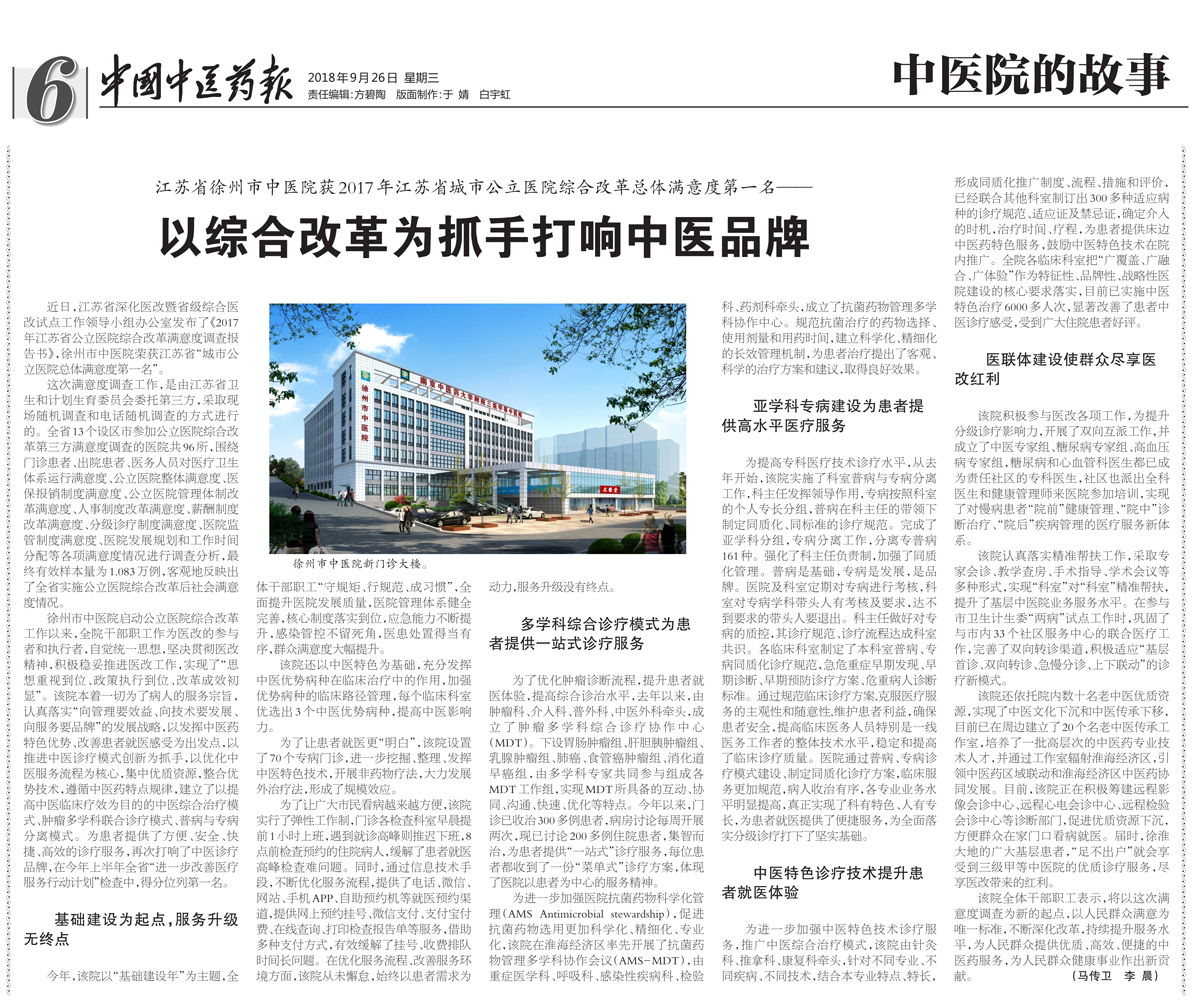 该院还以中医特色为基础,充分发挥中医优势病种在临床治疗中的作用,加强优势病种的临床路径管理,每个临床科室优选出3个中医优势病种,提高中医影响力。