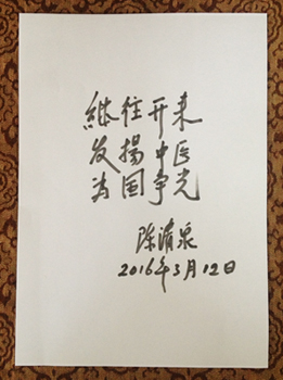 鲁比亚教授和陈清泉教授题字留念
