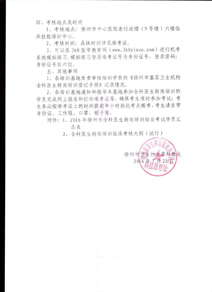 关于组织2016年徐州市全科医生转岗培训结业考试名的通知