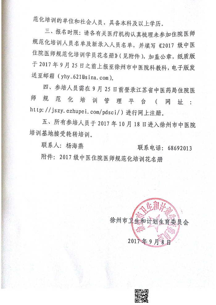 关于做好我市2017年中医类别住院医师规范化培训学员招录工作的通知