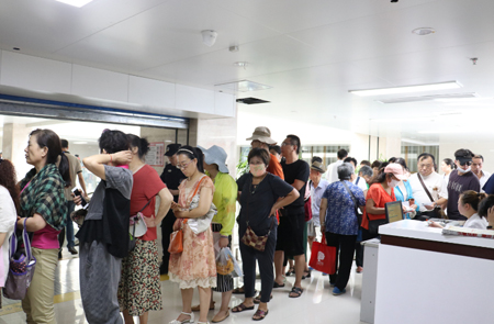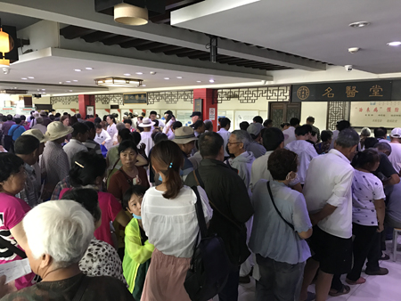 7月17日早上6时许,尽管已入伏天,气温炎热,但在市中医院各个穴贴处已排满了等待贴敷的市民朋友。