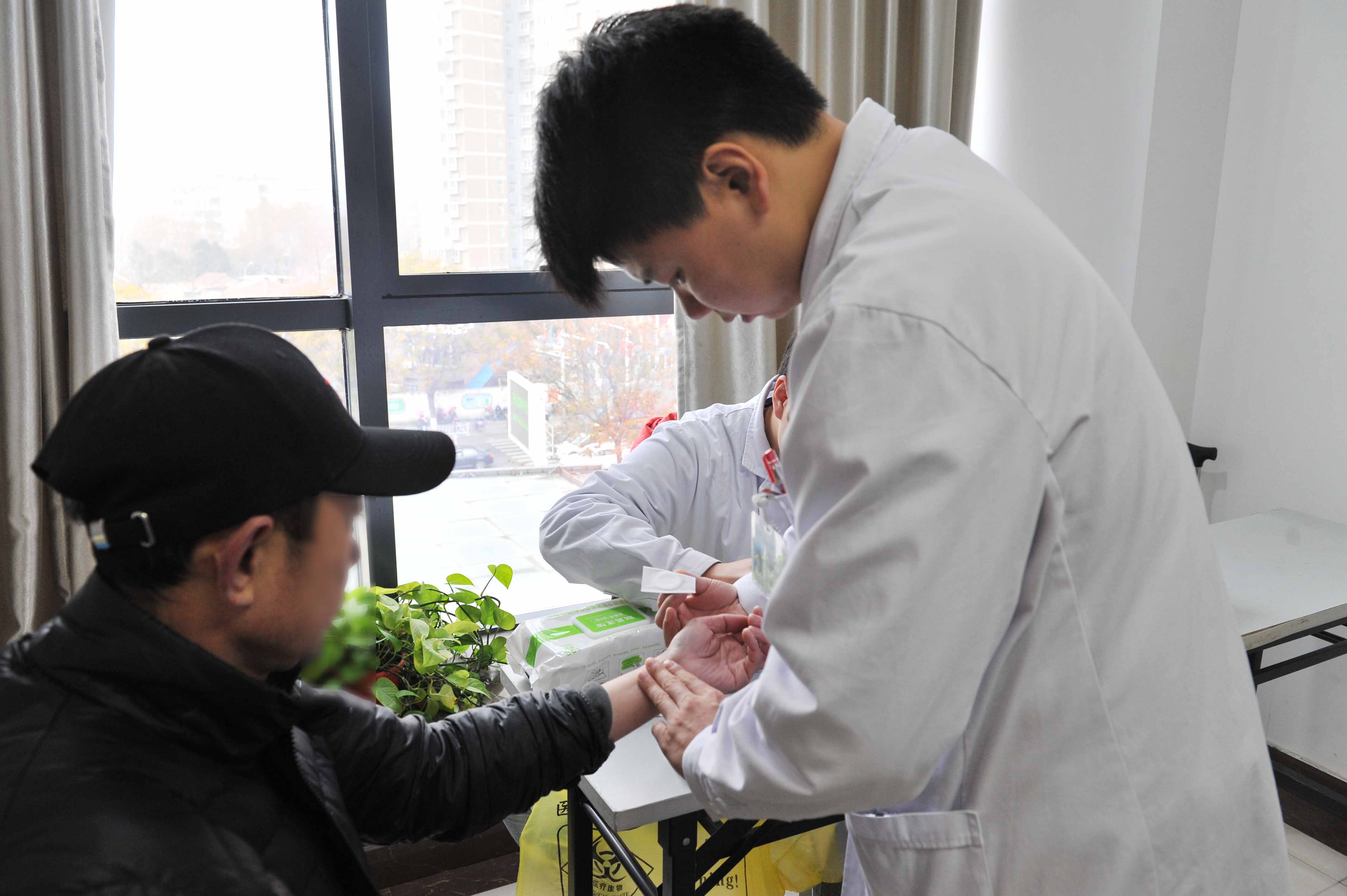 在现场,已经贴完第一贴的张大爷,笑意盈盈,认真听着医生给他讲解穴贴注意事项。他说道:“去年开始有腰腿疼痛的毛病,冬天尤其严重。今年夏天我贴了“三伏贴”,效果不错,疼痛减轻了,所以今年冬天又来贴三九贴治疗”。