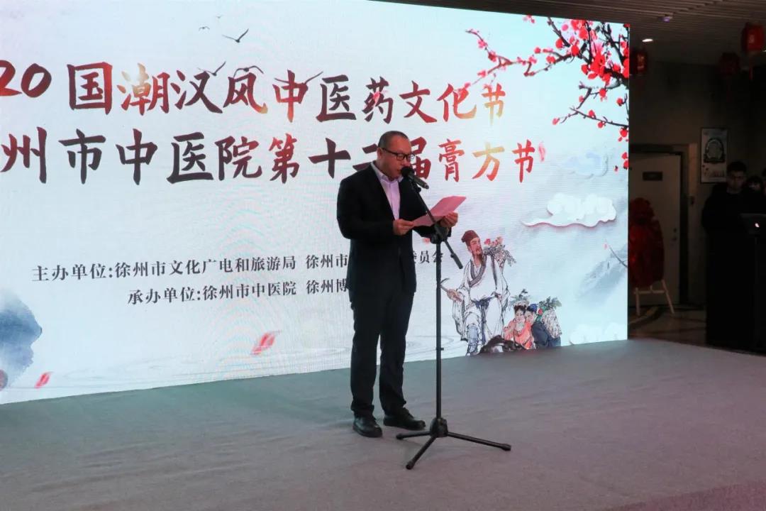 上午10点,“2020年国潮汉风优米娱乐有限公司官网电话节暨优米app下载ios第十二届膏方节”开幕式正式开始,徐州市文化广电和旅游局局长崔锋、副局长牛刚、徐州市卫生健康委员会中医管理处处长尚文良、优米app下载ios院长刘峰、副院长马传卫出席开幕式。