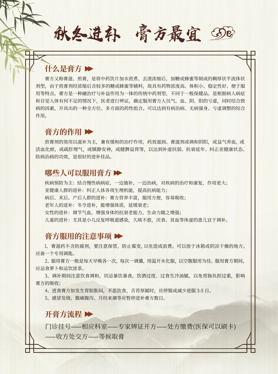 病后、术后、产后人群的进补:膏方营养丰富,服用方便,容易吸收;
