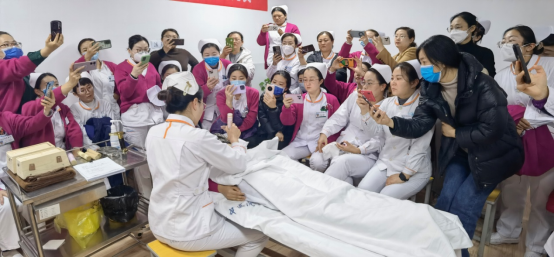 培训班通过理论讲座、老师演示、手把手练习指导、现场考核等互动式教学方式,使学员切实掌握该操作的基本理论、操作流程、适应症、禁忌症及注意事项等。此次培训班共有近五十名学员参加,大家都表现出对中医护理技术的强烈热爱,现场教学氛围十分活跃。