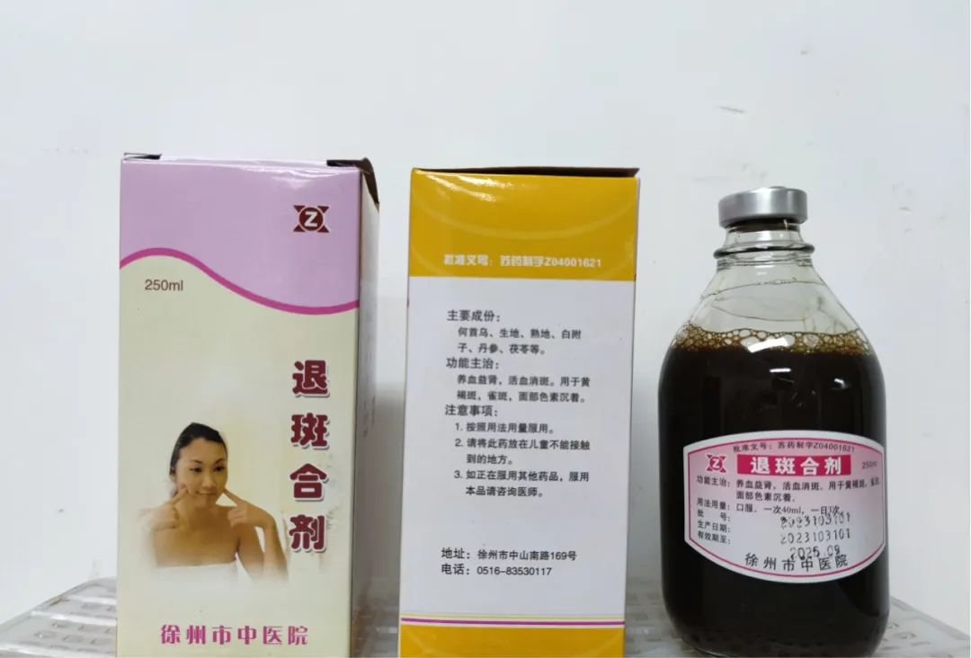 针对黄褐斑我院有自制的中成药退斑合剂,主要组方是何首乌、生熟地、白附子、丹参和茯苓等,能够达到养血益肾,养血消斑的效果,用于治疗黄褐斑、雀斑和面部色素沉着等。