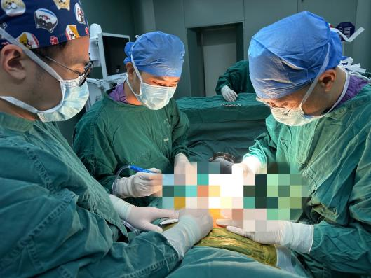 经过前期充分的围手术期准备,在麻醉科及手术室护理团队的精心配合下,权红光教授及其医疗团队王隽副主任医师、陈宝鹤、刘阳、宁飞龙及张文卓主治医师等为患者进行了手术治疗。术中探查疝内容物为远端约120cm回肠及其系膜和盲肠、阑尾等组织。患者突出体外的疝内容物较多,还入腹腔困难,但权红光教授考虑到患者高龄,基础疾病较多,机体功能欠佳,为患者实施了腹壁组织结构分离手术,有效增加了腹腔容积,减少了腹壁张力。术中多次腹内压监测,避免了肠管或网膜切除等主动减容的可能,进一步减少了患者手术创伤和腹内高压风险,为患者顺利实施了右侧腹股沟疝无张力修补术。术后患者在米优最新版本的快速康复治疗下,恢复良好,短时间内平安出院。