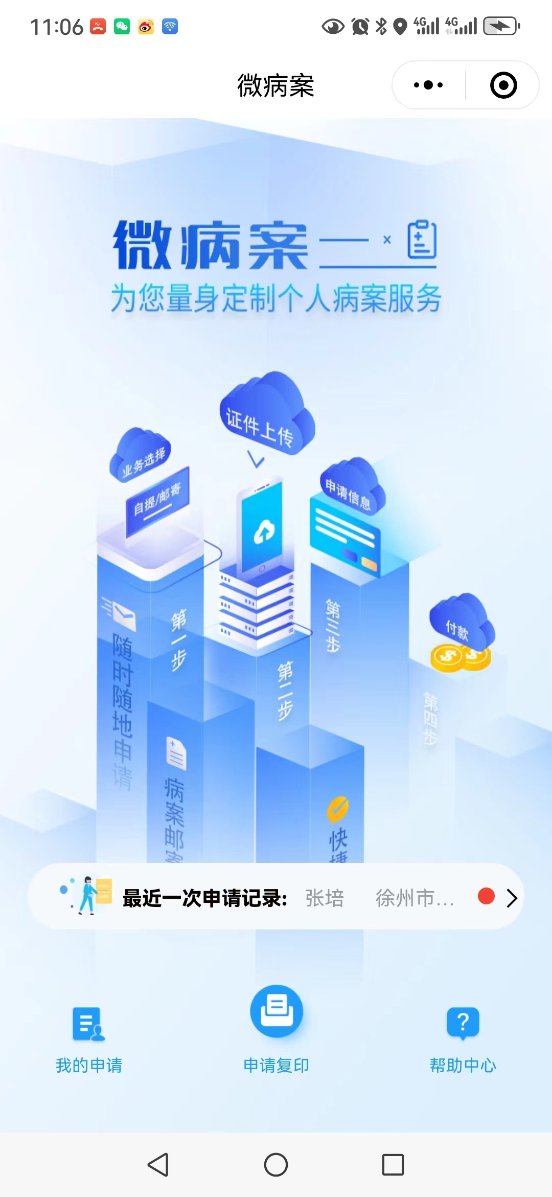 申请人于患者出院10个工作日后(节假日顺延),在【优米app下载ios】微信公众号【智慧医院】菜单栏点击【病案复印】,进入微病案小程序后进行申请。