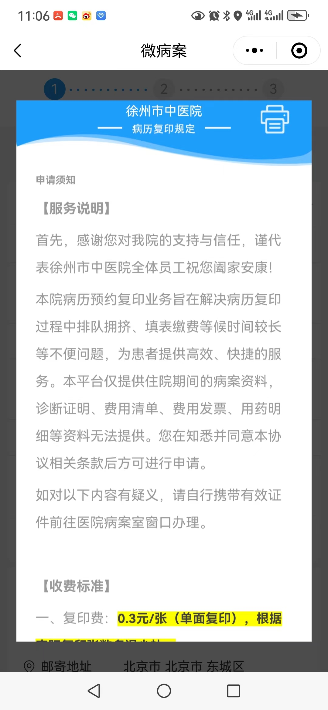 关注“优米app下载ios”微信公众号(服务号),在下方菜单栏,选择【智慧医院】→【病案复印】进入微病案小程序,点击【申请复印】,仔细阅读病历复印申请须知。
