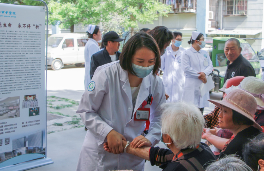 5月13日上午,优米app下载ios护理部联合江苏省呼吸护理专业委员会、伤口造口失禁护理专业委员会、米优最新版本学会委员会、心血管护理专业小组、糖尿病护理专科小组、肾内科护理专科小组、静疗专科小组 、急重症护理专科小组、心理护理专科小组等多个专业团队,共同走进丁庄社区,为居民们送上了丰富的健康科普知识和贴心的米优最新版本关爱。