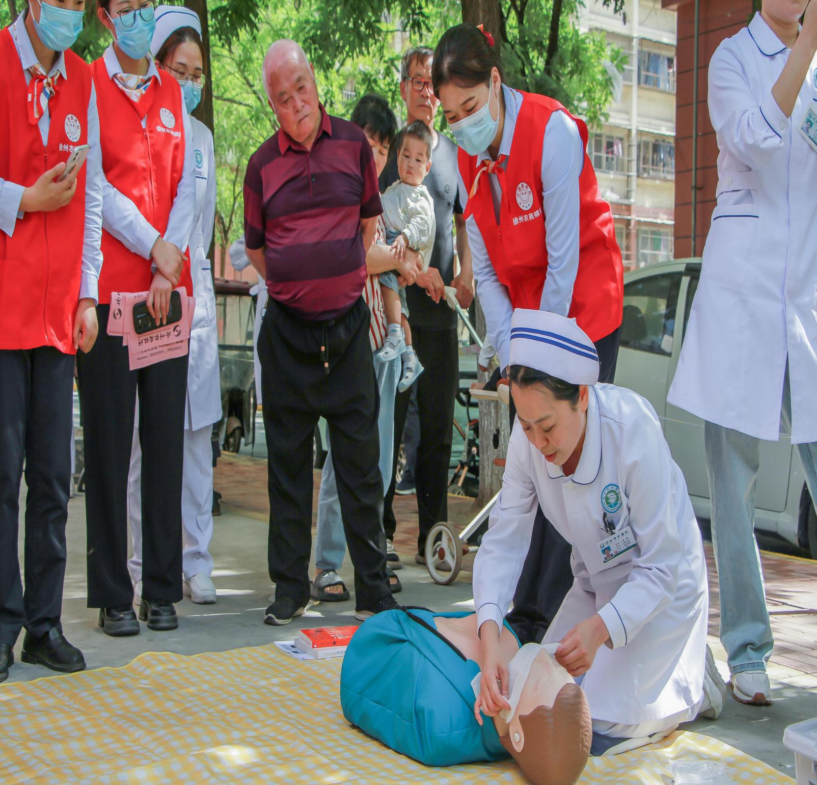 重症护理小组通过现场急救演示的方式,向居民们传授了急诊心肺复苏和海姆立克急救法的操作技能。通过演示,不仅提高了居民们的急救意识,也让他们在面对紧急情况时能够正确应对,为生命安全保驾护航。