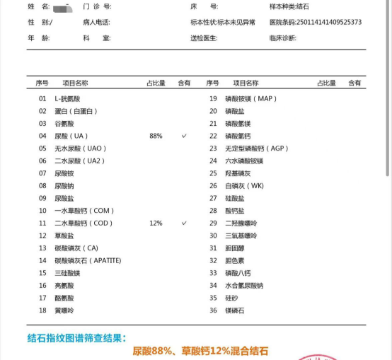 结石成分分析可以帮助发现患者是否存在代谢异常,如高钙血症、高尿酸血症等,从而进行相应的治疗和管理。
