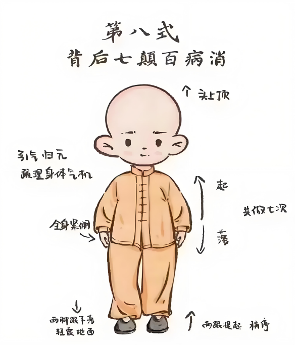 八段锦是中国传统健身功法,起源于北宋,距今约有900年的历史。因该健身功法共分为八段,每段一个动作,称“八段”;因为该健身动作不仅如锦缎般优美、柔顺,而且具有强身健体的效果,称“锦”;故名为“八段锦”。
