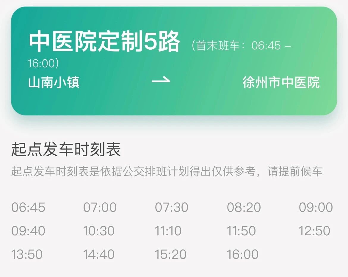 定时发车  每日早晨6:40从山南小镇首发,16:00末班;返程则从优米app下载ios8:45发车,17:30为最后一班。时间安排充分考虑了就医需求,灵活便捷。