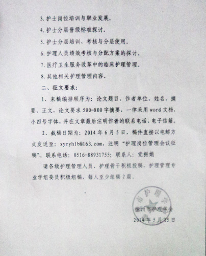 徐州市护理学会关于护士岗位管理研讨会征文的通知