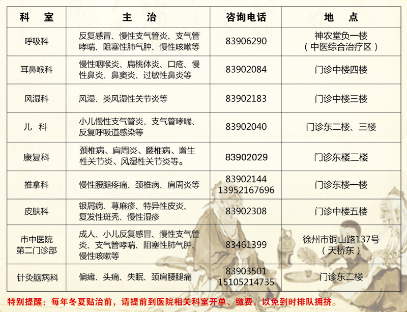 与往年相比,市中医院今年除了呼吸科、推拿科、风湿科、耳鼻喉科、儿科等常年开展“贴穴”的科室,又增加了针灸脑病科、皮肤科、康复科等,能“夏治”的“冬病”更多了,慢性支气管炎、反复感冒、慢性咳嗽、小儿哮喘、风湿病、慢性咽炎、过敏性鼻炎、颈椎病、肩周炎、慢性湿疹、失眠……,甚至还有都市人关注的亚健康,也可以进行穴位敷贴。专家认为,对个人保健而言,凡是阴阳、脏腑、气血功能容易失调的人,都适合冬病夏治。