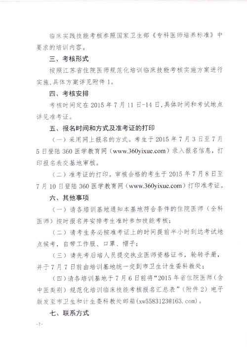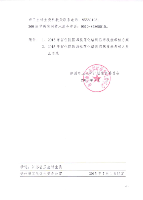关于开展2015年江苏省住院医师/专科医师规范化培训临床技能考核的通知