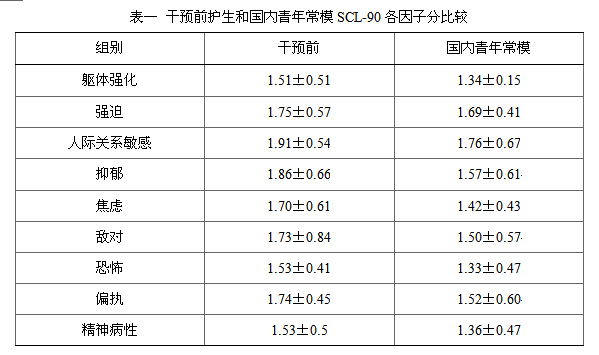 摘要 目的:了解护生实习前的心理状况,采用综合目标强化培训的方法对护生进行干预,减轻其心理压力。方法:采用精神症状自评量表(—90)对五年制高职护生综合目标强...