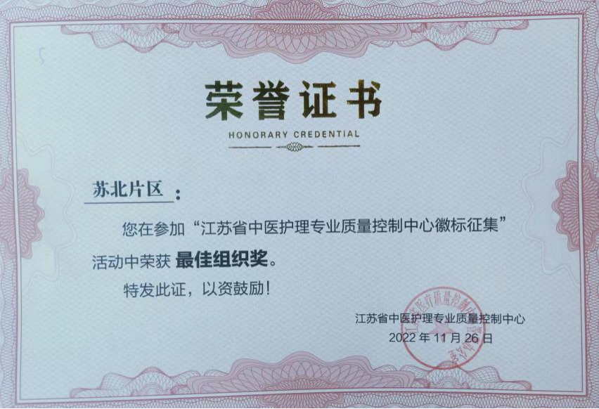 日前,在江苏省中医护理质控中心举办的徽标征集活动中,我院作为苏北片区组长单位,获“最佳组织奖”,我院护士李永聪等人的作品获三等奖。 江苏省中医护理专业...