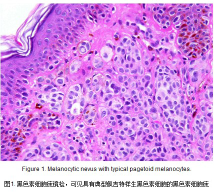 美国Robert M. Hurwitz博士在 Dermatology Practical and Conceptual上报道利用非典型或典型佩吉特样细胞的特性,对黑色素瘤和黑色素细胞痣做了详细区分。