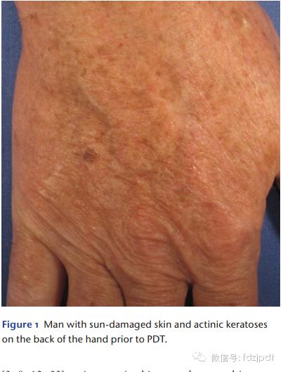 Zane等观察了红光光动力治疗AK及重度光损伤患者,结果显示色沉、细纹、粗糙等均有显著改善。Issa等观察到,皱纹、皮肤质地及光滑度,在治疗后6个月时比3个月时又有进一步改善。也可以在治疗前进行CO2激光或ER:YAG激光预处理,可以增强光敏剂的穿透及减少光照剂量。