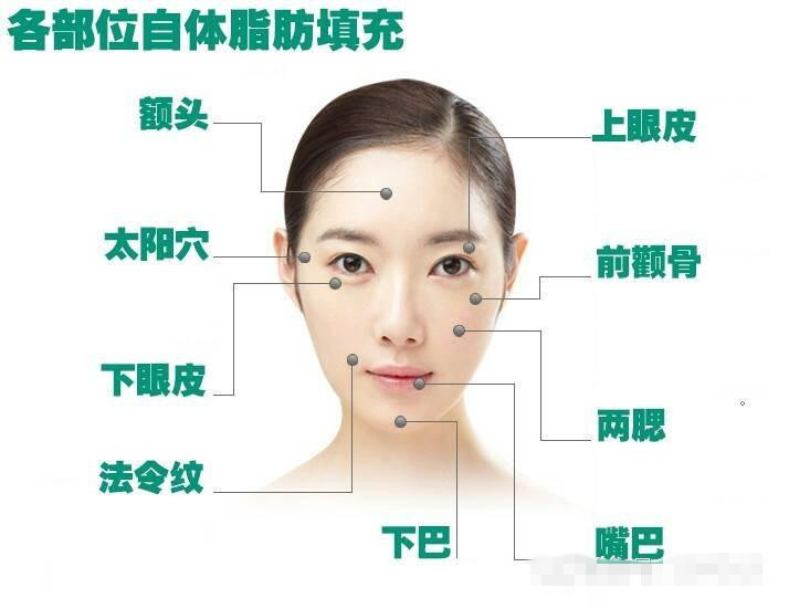 1、额头:额头是决定整体印象的重要因素之一,过于平平或凹陷的额头,通过脂肪移植使之丰满,会使整个面部更加立体娇柔。