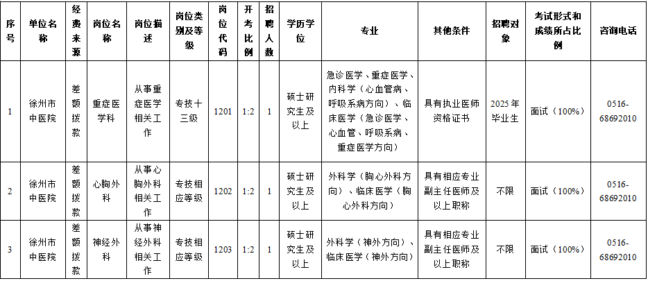 2025年徐州市事业单位公开招聘医务人员岗位表 根据《江苏省事业单位公开招聘人员办法》(苏办发〔2020〕9号)等有关规定,结合医院卫生健康事业发展...