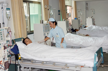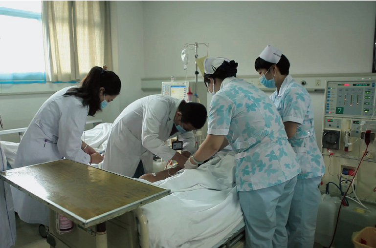 我科血透中心成立于1995年,是我市较早成立的血液透析中心之一。可常规开展血液透析、血液透析滤过、血液灌流、血浆置换、人工肝、连续肾脏替代疗法(CRRT)、胆红素吸附等多种血液净化技术,透析中心发挥中医优势,开展中药外敷、神灯照射等技术促进动静脉内瘘成熟,为患者建立并长期维护良好的血液净化生命通路。透析中心拥有全市首台德国贝朗劳尔双级反渗热消毒水处理系统,血液透析用水标准高于国家要求,与日本超纯透析标准相当。团队在处置急慢性肾功能衰竭、高钾血症、急性心衰、内瘘血栓等急危重症积累了丰富的临床经验,具有领先的技术优势。